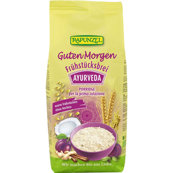 Feiner Buchweizen, Gerstenmalz, wertvoller Amaranth und aromatisch nussige Erdmandeln fein abgerundet mit echter Bourbon Vanille machen diesen Guten Morgen Brei zu einem echten Balance-Frühstück.