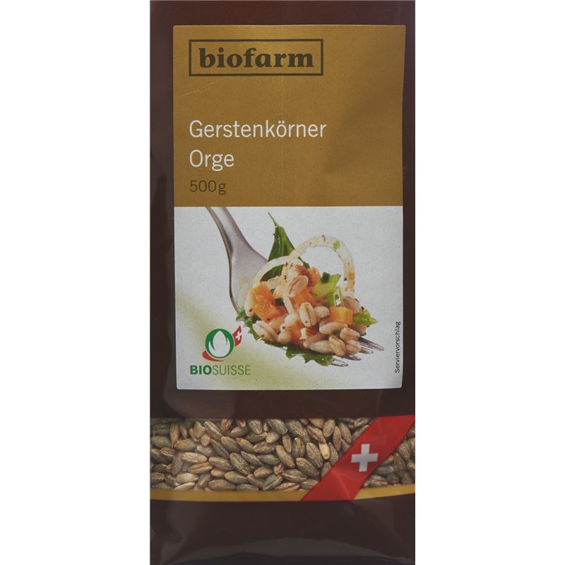 Eigenschaften: Gerstenkörner aus Schweizer Bio-Anbau.<br />Bio heisst für uns Sorge tragen. Zum Boden und zur Umwelt. Damit erhalten wir auch künftigen Generationen die Nahrungsgrundlage. BIOFAIR. Auch das ist Biofarm.