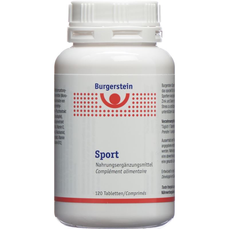 Eigenschaften: Für Leistungs- und Breitensportler<ul><li>Magnesium, Kalzium und Vitamin D tragen zur Erhaltung einer normalen Muskelfunktion bei.</li><li>Zink und Magnesium tragen zu einer normalen Eiweisssynthese bei.</li><li>Vitamin C, E, Selen und Zink tragen dazu bei, die Zellen vor oxidativem Stress zu schützen.</li><li>Vitamin B1, B2, B6, B12, Niacin, Pantothensäure, Folsäure sowie Kalzium, Magnesium und Eisen tragen zu einem normalen Energiestoffwechsel bei.</li><li>Vitamin B6, B12, D und C sowie Zink tragen zu einer normalen Funktion des Immunsystems bei.</li></ul>Burgerstein Sport enthält keine dopinghaltigen Substanzen gemäss der WADA-Liste (Welt-Antidoping-Agentur).<br />Entwickelt in der Schweiz, hergestellt in den USA.