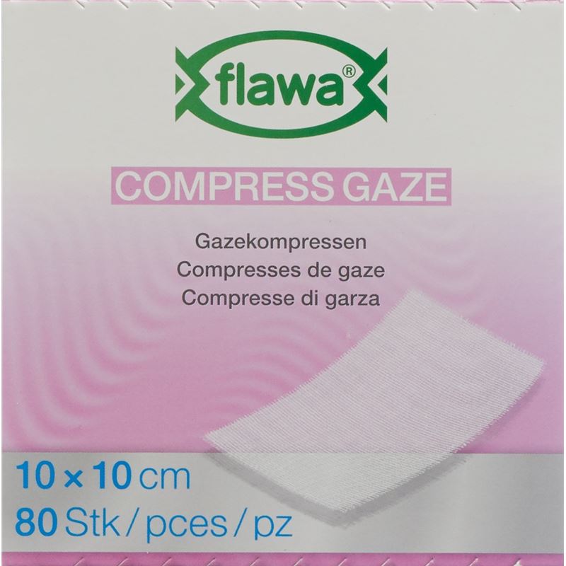 Eigenschaften: Die zu 100% aus Baumwolle bestehenden Flawa Gazekompressen eignen sich als hygienische Wundauflage unter Verbänden. Sie sind hydrophil, geschnitten und wurden nach der Herstellung keimreduzierend behandelt.Anwendung: Damit die Gazekompresse hygienisch bleibt, sollte sie nicht berührt werden.Die Packung enthält 80 Gazekompressen mit den Massen 10cm x 10cm.