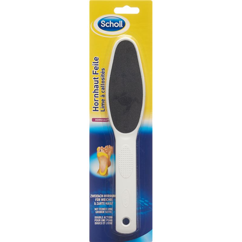 Eigenschaften: Die Scholl Hornhaut Feile besitzt eine Zweifach-Wirkung: Die grobe Reibefläche entfernt raue, trockene oder verhärtete Haut leicht und sicher, während die feine Seite die Haut glättet und sie noch zarter und gepflegter macht. Durch den körpergerechten geformten und extra langen Griff erreicht man alle betroffenen Stellen problemlos. Das Produkt ist auch auf trockener Haut bedenkenlos anwendbar.
