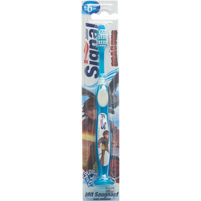 Eigenschaften: Die Signal Junior Zahnbürste besitzt einen kleinen, schmalen Bürstenkopf, welcher eine sorgfältige Reinigung der schwer erreichbaren Mundbereiche und Backenzähne ermöglicht. Die flexiblen V-Borsten heben Plaque gründlich ab und kommen auch problemlos in die Zahnzwischenräume, ohne das Zahnfleisch zu verletzen. Ausserdem ist die Zahnbürste dank dem flexiblen und rutschfesten Bürstengriff mit spezieller Daumenmulde besonders gut zu halten und zu bewegen.